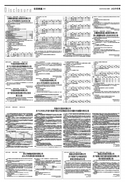 1、 安徽皖通高速公路股份有限公司2014年年度股东大会决议;