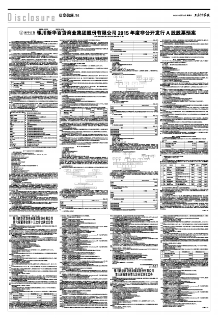 (详见公司2015年5月23日披露在上海证券交易网站www.sse.com.cn的《银川新华百货商业集团股份有限公司2015年度非公开发行A股股票预案》。)