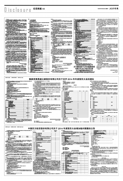 中国东方航空股份有限公司关于2014年度股东大会增加临时提案的公告