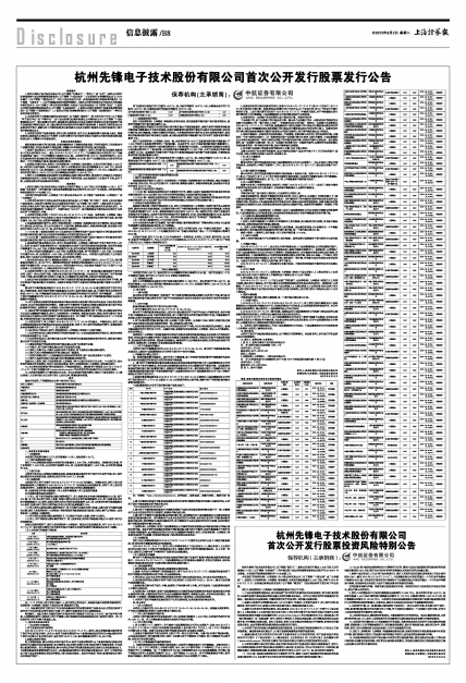 杭州先锋电子技术股份有限公司首次公开发行股票发行公告