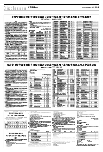 3、本次发行的网上、网下申购缴款工作已于2015年6月3日(T日)结束。在初步询价阶段提交有效报价的76家网下投资者管理的123个配售对象全部参与了网下申购,并按照2015年6月2日公布的《南京音飞储存设备股份有限公司首次公开发行股票发行公告》(以下简称“《发行公告》”)的要求及时足额缴纳了申购款,缴付申购资金已经安永华明会计师事务所审验,并出具了验资报告;网下发行过程已经广东华商律师事务所见证,并出具了专项法律意见书。