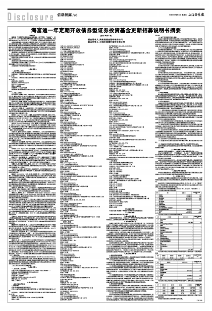 海富通一年定期开放债券型证券投资基金更新招募说明书摘要