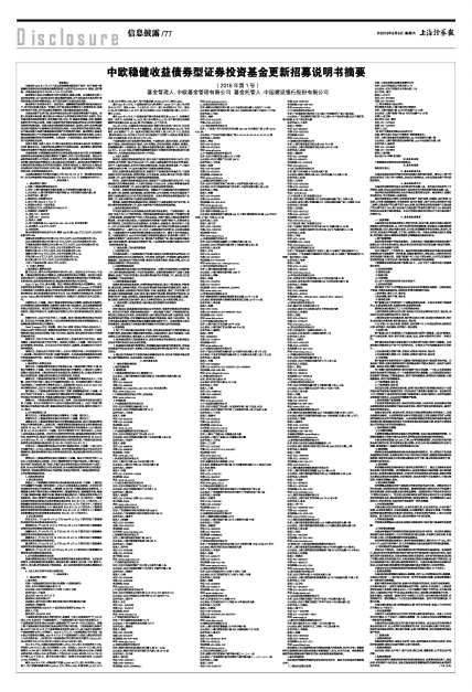 中欧稳健收益债券型证券投资基金更新招募说明书摘要