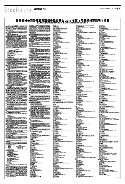 景顺长城公司治理股票型证券投资基金2015年第1号更新招募说明书摘要