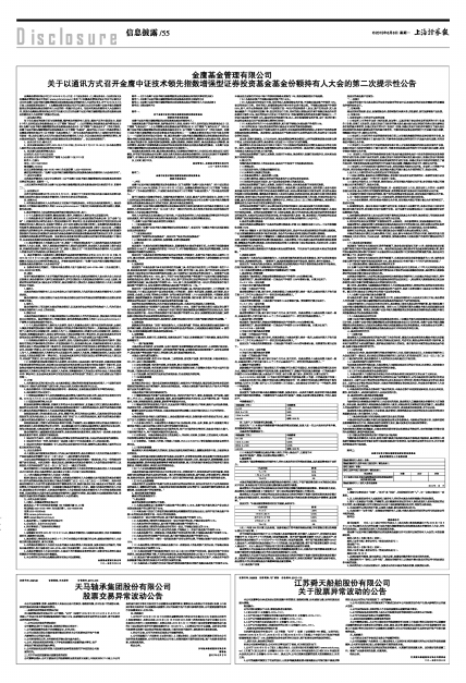 关于以通讯方式召开金鹰中证技术领先指数增强型证券投资基金基金份额持有人大会的第二次提示性公告