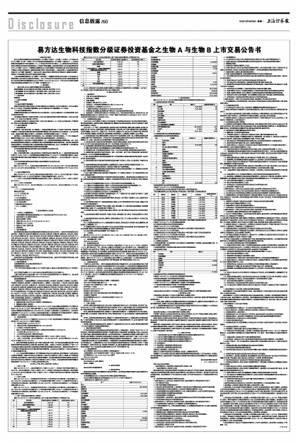 易方达生物科技指数分级证券投资基金之生物A与生物B上市交易公告书