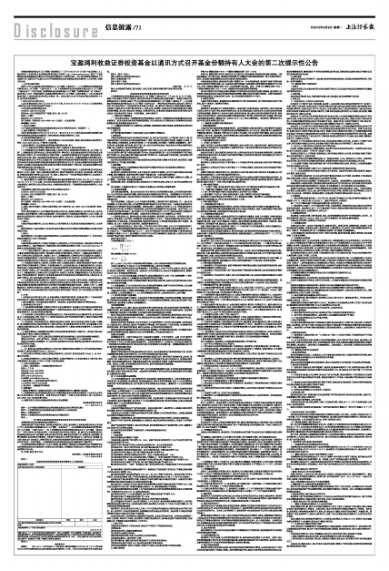 宝盈鸿利收益证券投资基金以通讯方式召开基金份额持有人大会的第二次提示性公告