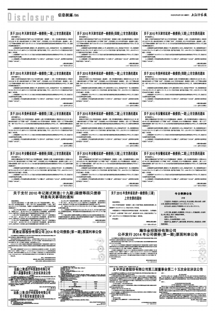 关于2015年天津市政府一般债券(三期)上市交易的通知