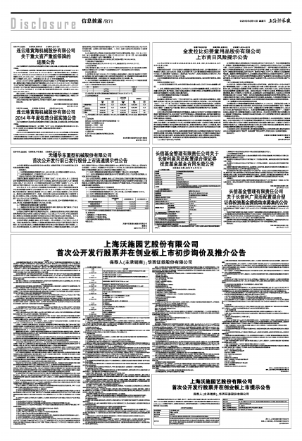 上海沃施园艺股份有限公司(以下简称“发行人”)首次公开发行股票申请已获中国证监会证监许可[2015]1181号文核准,招股说明书(招股意向书)及附件披露于中国证监会指定的巨潮资讯网(网址www.cninfo.com.cn),并置备于发行人、深圳证券交易所、本次发行股票保荐人(主承销商)华西证券股份有限公司的住所,供公众查阅。