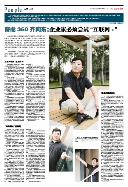 齐向东说,奇虎360非常幸运,在这场互联网革命来临前十年创业,又正好选择了安全领域。 “等于我们用互联网的思维,提前十年准备了的安全思路、方法和产品,正好碰上‘互联网+’的高潮。”