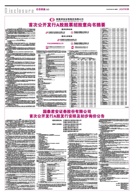 本次初步询价阶段初始发行总量为152,500万股,其中初步询价阶段网下初始发行数量106,750万股,为本次询价阶段初始发行总量的70%;网上初始发行数量45,750万股,为本次询价阶段初始发行总量的30%。本次最终发行数量、申购阶段网上、网下初始发行数量将在《国泰君安证券股份有限公司首次公开发行A股发行公告》(以下简称“《发行公告》”)中披露。