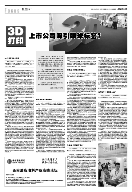 3D打印上市公司吸引眼球标签?