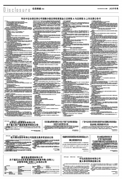 华安中证全指证券公司指数分级证券投资基金之证券股A与证券股B上市交易公告书