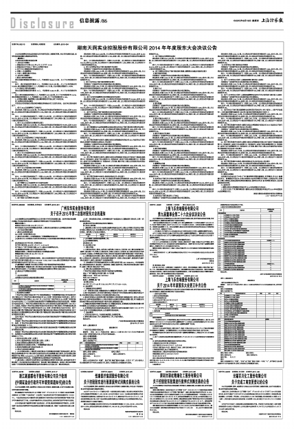 湖南天润实业控股股份有限公司2014年年度股东大会决议公告