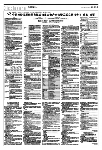 《中纺投资发展股份有限公司重大资产出售暨关联交易报告书(草案)摘要》详见同日《中国证券报》、《上海证券报》及上海证券交易所网站(http://www.sse.com.cn)和指定媒体的公司公告。