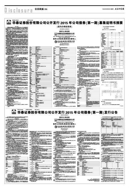 1、债券名称:华泰证券股份有限公司2015年公司债券(第一期)。