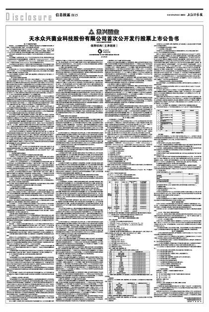 天水众兴菌业科技股份有限公司(以下简称“众兴菌业”、“本公司”、“公司”或“发行人”)及全体董事、监事、高级管理人员保证上市公告书的真实性、准确性、完整性,承诺上市公告书不存在虚假记载、误导性陈述或重大遗漏,并承担个别和连带的法律责任。