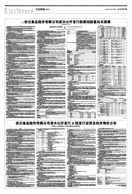 16、 本公告仅对本次发行中有关初步询价的事宜进行说明,投资者欲了解本次发行的一般情况,请仔细阅读2015年6月25日(T-6日)登载于上交所网站(www.sse.com.cn)的《安记食品股份有限公司首次公开发行股票招股意向书》(以下简称“《招股意向书》”)全文,《安记食品股份有限公司首次公开发行股票招股意向书摘要》同时刊登于《中国证券报》、《上海证券报》、《证券时报》和《证券日报》。