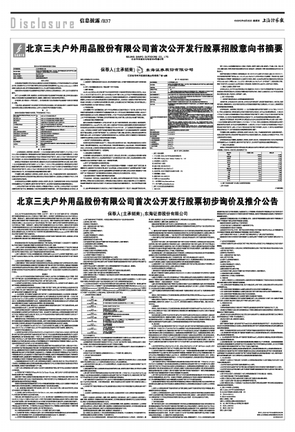 北京三夫户外用品股份有限公司首次公开发行股票初步询价及推介公告