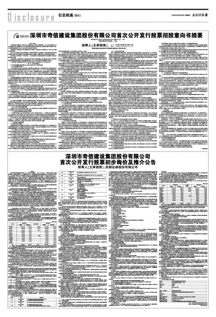 ■深圳市奇信建设集团股份有限公司首次公开发行股票招股意向书摘要
