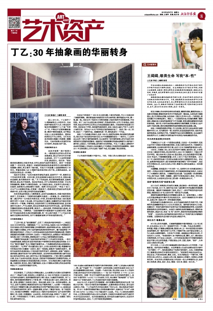 在记者看来,丁乙的起点可谓绝处逢生,从大家都认为无路可走的境界里走出了一条康庄大道,但他更让人叹服的是,从1980年代投身八五运动到30年后创作这批新作,他在抽象画的创作之路上经历了无数次华丽转身。在丁乙看来,他对抽象画的探索有几个阶段:第一个阶段是比较工业化、理性化的。到第二阶段,要借助工具转到口语化。现在回顾,实际上每一次的转变都有一些节点,这些节点都预示着原来的创作方法不能再持续了。比如第一个转型期关注的是关于精确的问题,因为原来都是用非常严谨的画法来画十示,结果造成了对身体的某种伤害,因为一直要趴着画,时间久了腰直不起来。有了转型的压力,当时就讨论精确性一定要用这么工程的方法来表达吗?是不是有所谓的精神上的、思想上的精确性?以这样的一种思考为突破,觉得可“口语化”,所以,第二个阶段他就用了口语化,会话的方式就比较自由一点,也摆脱了原先的趴着作画的方式。