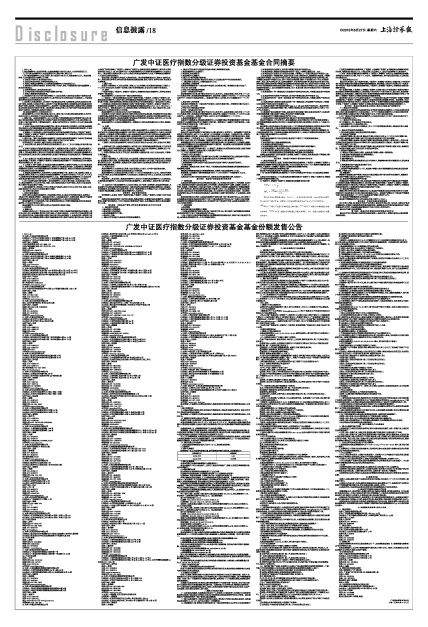 基金管理人应当公告半年度和年度最后一个市场交易日基金资产净值和广发医疗份额基金份额净值、广发医疗A份额和广发医疗B份额各自的基金份额参考净值。基金管理人应当在前款规定的市场交易日的次日,将基金资产净值、广发医疗份额基金份额净值和基金份额累计净值、广发医疗A份额和广发医疗B份额各自的基金份额参考净值登载在指定媒介上。