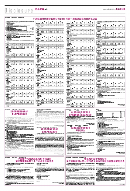 广西桂冠电力股份有限公司2015年第一次临时股东大会决议公告