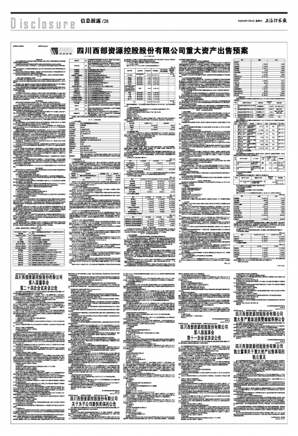 ■ 四川西部资源控股股份有限公司重大资产出售预案