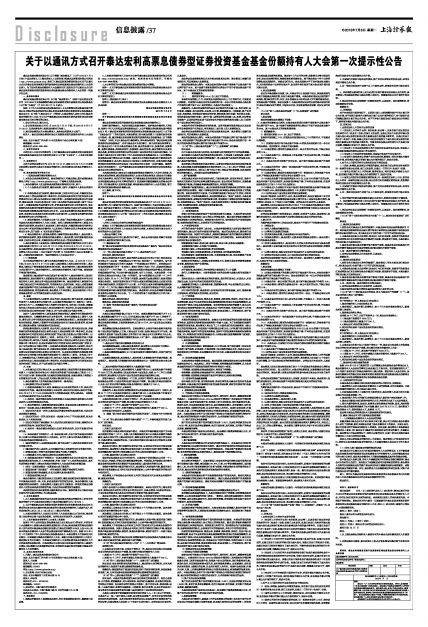 关于以通讯方式召开泰达宏利高票息债券型证券投资基金基金份额持有人大会第一次提示性公告