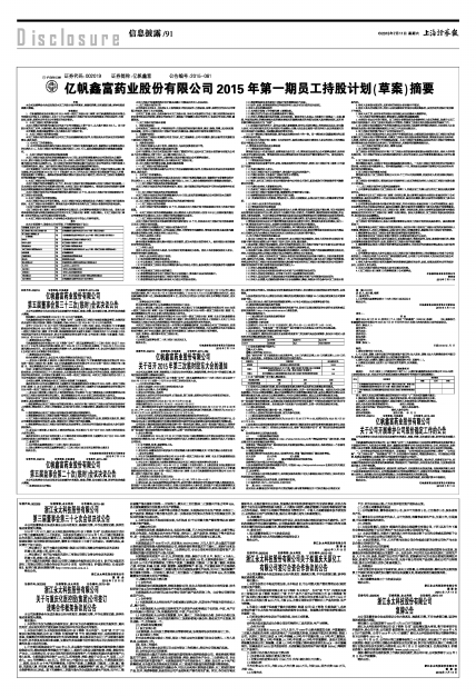 亿帆鑫富药业股份有限公司2015年第一期员工持股计划(草案)摘要