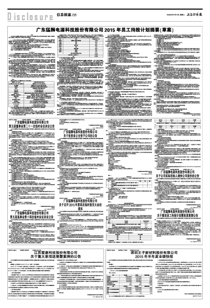 广东猛狮电源科技股份有限公司2015年员工持股计划摘要(草案)
