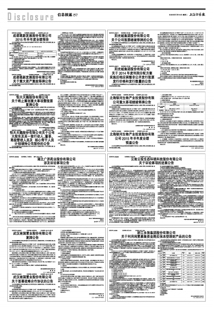 成都高新发展股份有限公司2015年半年度业绩预告
