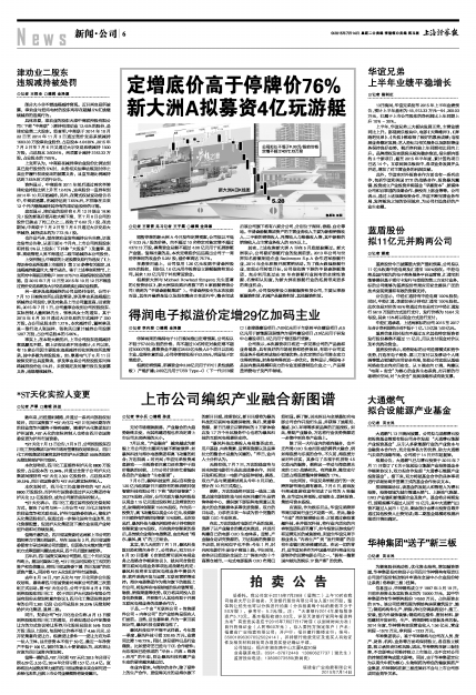 定增底价高于停牌价76% 新大洲A拟募资4亿玩游艇