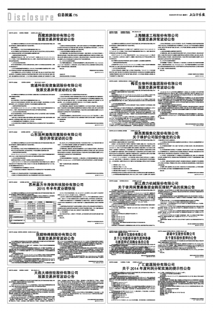 2015年7月10日、7月13日、7月14日,公司股票连续三个交易日收盘价格涨幅偏离值累计超20%,根据上海证券交易所《股票交易规则》的有关规定,属于股票交易异常波动。