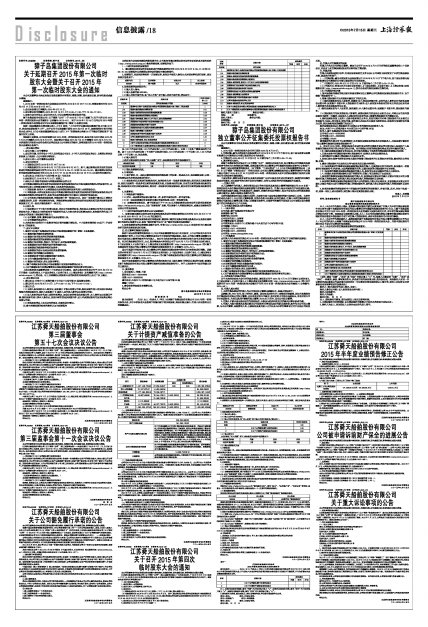 1、2015年第一次临时股东大会现场会议时间为2015年8月18日13:30;网络投票时间为2015年8月17日至2015年8月18日。