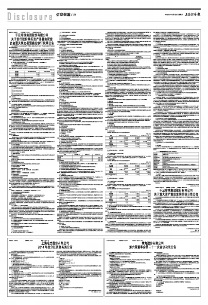 上海电力股份有限公司2014年年度利润分配方案经2015年6月26日召开的本公司2014年年度股东大会审议通过。股东大会决议公告刊登于2015年6月27日的《中国证券报》、《上海证券报》和《证券时报》以及上海证券交易所网站。