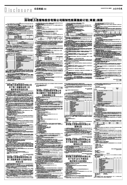 2015年7月9日,深圳歌力思服饰股份有限公司(以下简称“本公司”或“公司”)发布了《深圳歌力思服饰股份有限公司关于拟筹划员工持股计划股票停牌公告》(临2015-029)。