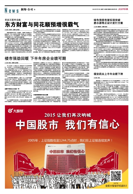 经上海证券报社授权,中国证券网独家全权代理《上海证券报》信息登载业务。本页内容未经书面授权许可,不得转载、复制或在非中国证券网所属服务器建立镜像。欲咨询授权事宜请与中国证券网联系 (400-820-0277) 。