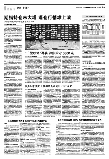 “千股跌停”再袭 沪指险守3800点