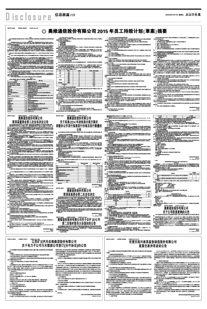 奥维通信股份有限公司2015年员工持股计划(草案)摘要