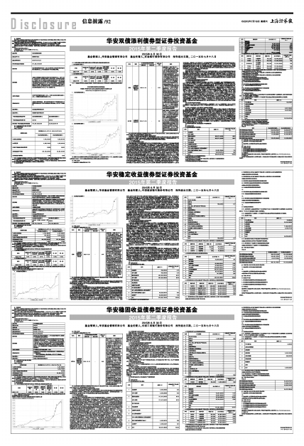 截至2015年6月30日,华安稳定收益债券A份额净值为1.1493元,B份额净值为1.1454元;华安稳定收益债券A份额净值增长率为1.07%, B份额净值增长率为0.97%,同期业绩比较基准增长率为2.27%。