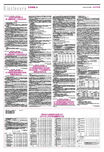 上述内容均同步刊登在《中国证券报》、《证券时报》、《证券日报》、《上海证券报》以及上海证券交易所网站上。