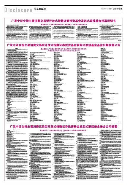 13.本公告仅对本基金募集的有关事项和规定予以说明。投资者欲了解本基金的详细情况,请详细阅读2015年7月18日刊登在《中国证券报》等媒体上的《广发中证全指主要消费交易型开放式指数证券投资基金发起式联接基金招募说明书》。本基金的基金合同、招募说明书及本公告将同时发布在本公司网站和本基金代销机构网站(详见本公告正文)。投资者亦可通过本公司网站下载基金申请表格和了解基金募集相关事宜。