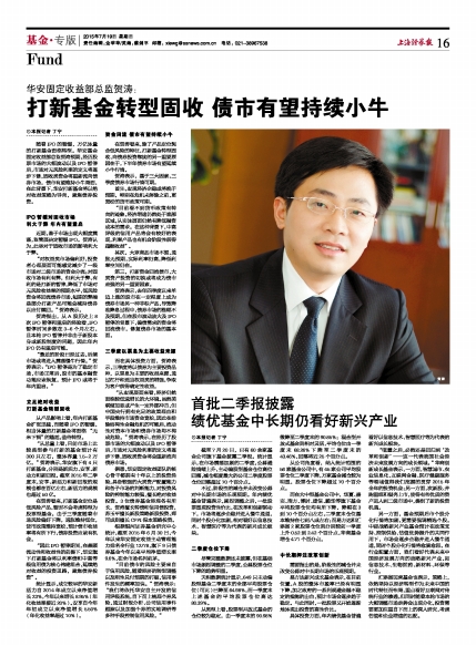 根据银河证券基金研究中心统计,截至2015年6月30日,今年以来华安固定收益主动管理能力排名全行业12/78,旗下9只债券基金今年以来平均净值增长率9.6%,在全市场名列前茅。