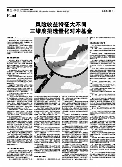 业内人士表示,根据风险收益的不同,量化对冲产品大致划分为三大类:多元套利产品、市场中性策略产品和股票多空策略产品,三种策略根据股指期货的净敞口不同,形成了不同的风险收益级别,以适应不同的配置需求。