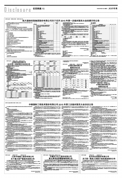 航天通信控股集团股份有限公司关于召开2015年第一次临时股东大会的提示性公告