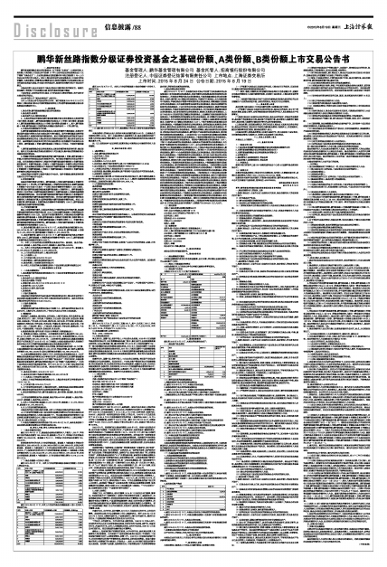 鹏华新丝路指数分级证券投资基金之基础份额、A类份额、B类份额上市交易公告书
