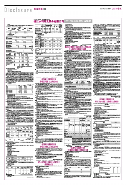 证券代码:600283 证券简称:钱江水利 公告编号:2015- 039
