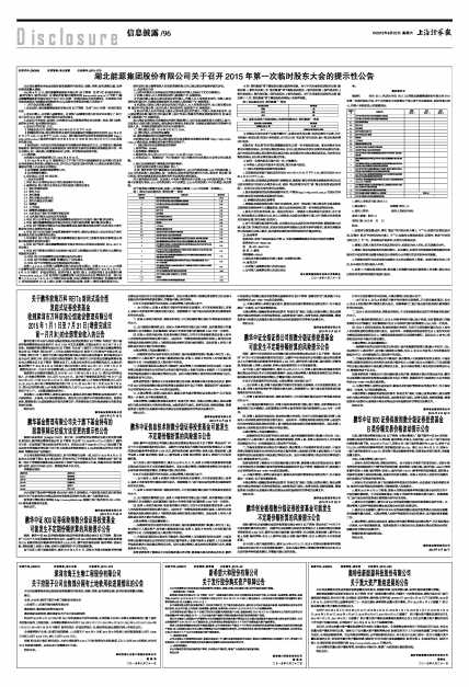 湖北能源集团股份有限公司关于召开2015年第一次临时股东大会的提示性公告