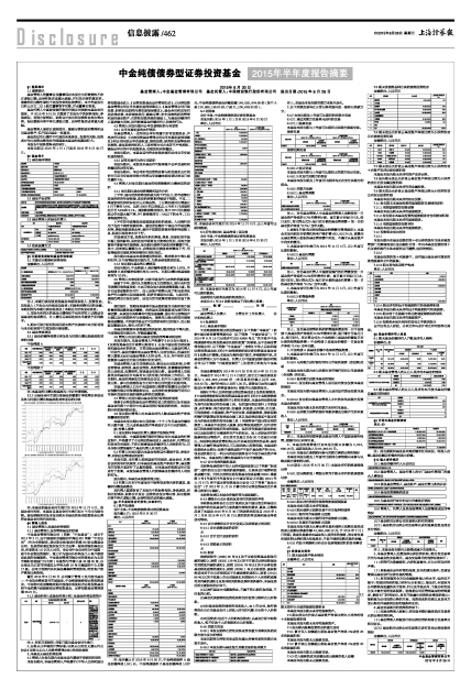 注:报告截止日2015年6月30日,中金纯债债券A基金份额净值1.041元,中金纯债债券C基金份额净值1.037元;中金纯债债券基金份额总额148,092,844.36份(其中A类126,986,195.04份,C类21,106,649.32份)。